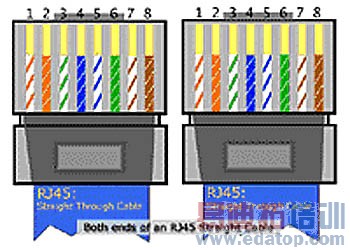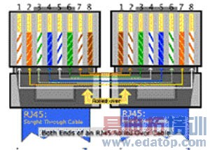 一根正常的以太网铜网线,可以用来从一端到另一端传输电信号。直连网线是用来连接个人计算机到交换机的,就象图A中显示的情况。