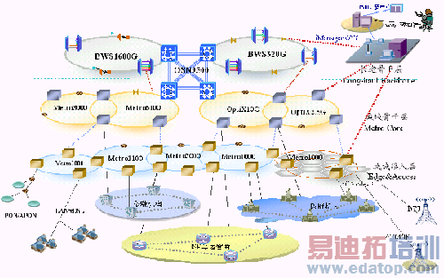 城域接入层,以Metro系列产品提供SDH、ATM、IP综合传输能力,满足多业务传送的需求。采用VP-RING 技术和内嵌RPR技术、ET-R技术,为宽带数据业务在传输中的带宽统计复用、QoS、环网保护、业务处理等方面提供完善的解决方案。