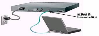 因为笔记本电脑的便携性能,所以配置交换机通常是采用笔记本电脑进行,在实在无笔记本的情况下,当然也可以采用台式机,但移动起来麻烦些。交换机的本地配置方式是通过计算机与交换机的"Console"端口直接连接的方式进行通信的,它的连接图如图1所示。