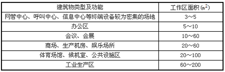 注:1对于应用场合,如终端设备的安装位置和数量无法确定时或使用彻底为大客户租用并考虑自设置计算机网络时,工作区面积可按区域(租用场地)面积确定。