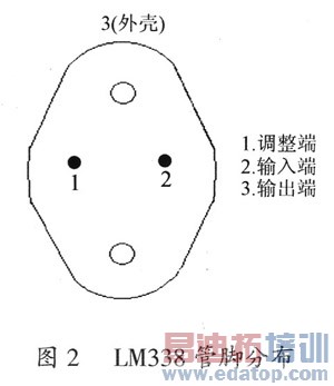 如果稳压集成电路的输入端接入较高的电压,而输出端恰好是空载,此时开机,LM338很容易由于过电压而在瞬间损坏。为了解决这个问题,在LM338的输入端加入了由VT1组成的输入电压限制电路,实际上就是一个射极跟随器,用这个电路保证LM338的输入输出电压差最高为5V,从而避免了因过电压损坏集成电路。