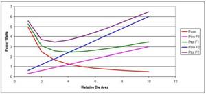 但是,在更高的工作频率下,最佳裸片面积较小,从而带来成本节约。实际上,在低频率下,通过调整裸片面积来最小化损耗会带来极高成本的设计。但是,转到更高工作频率后,我们就可以优化裸片面积来降低损耗,从而缩小电源的半导体体积。这样做的缺点是,如果我们不改进半导体技术,那么电源效率将会降低。