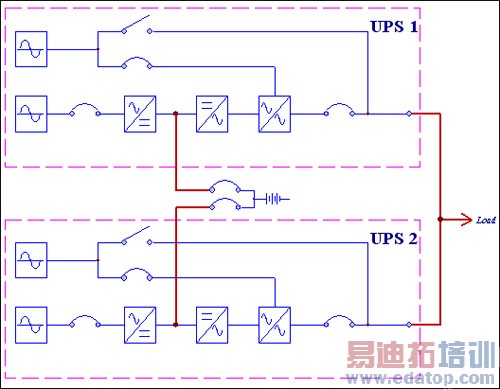 1. UPS冗余(1+1)并机共用电池组原理图