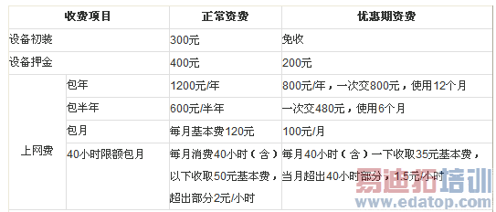北京网通提供的ADSL业务资标准如下:
