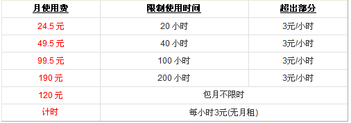 目前电力上网还没有得到政策的首肯,只有中电飞华公司在北京的部分小区中运行全国较大的电力线宽带接入试验网,据说目前至少有5万户。目前,中电飞华采取的是固定的12户,或是24户共享10M带宽,最低能保证512K的带宽。因此它的资费标准只能与同是512K的ADSL作比较,中电飞华推出的PLC资费如下: