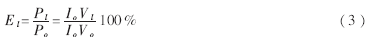 负载部分和电源部分类似,也可等效为有效负载Rl和与其连接的耗能元件Rp。负载部分的效率(Ei)定义为有效负载实际吸取功率与转换器提供的输出功率之比: