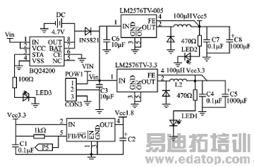 一个比较大的嵌入式系统硬件电路,应该分模块进行焊接、调试,避免遇到问题时无从下手检查。由于系统中每个电路模块都需要接入输入电源,如果电源输入不当,则会使输出结果不正确甚至烧坏集成电路,因此应该首先安装、调试系统电源模块。系统电源电路模块的成功调试是整个硬件电路调试成功的关键。