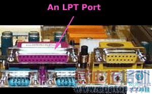 在新的计算机上,你会发现LPT端口总是在两个COM端口的正上方,并且它通常都是紫色的。不管你使用的是什么类型的LPT,它们看起来都是一样的,只是四种不同类型LPT端口的电子特征会有所不同,而这一特性是对用户透明的。所有LPT端口都是负极DB-25连接器。 各种不同的LPT端口