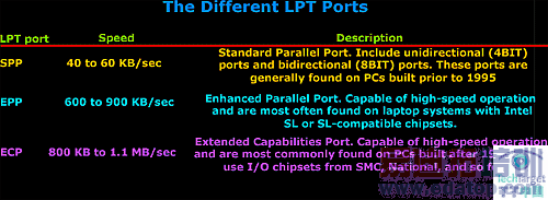在我们分析LPT端口的引脚分布之前,让我们来看看现有的不同类型的LPT端口。同样的,由于是在LPT端口上,你可以得到不同的速度: