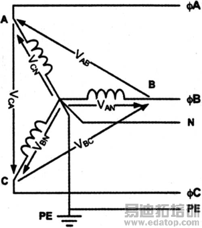 图1 没有零线和隔离保护地连接的三相Δ连接