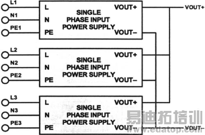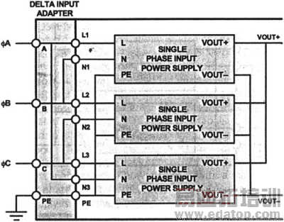 图6 从三相Δac电源连接三个单相输入ac-dc电源