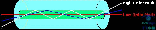 这两个视点之间的某个特定的角度下,光线不会在水面发生反射而是直接穿越空气/水的界面让你看到池塘的底部。多模光纤,顾名思义,表示有多种方式传播光线。该范围包括低位模式到高位模式。低位模式采取的是到达中间位置最直接路线的模式,而高位模式采取的是最长路线,因为它们是从一边到另外一边反弹前进的。