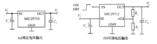 现在个人电脑新增加了3.3v输出电压挡,将5v电压变换到3~4v之间电压的计算机电源电路,有多种方法 。最简单的方法是在母板上使用单片ld0提供vcc,有固定电压输出和可调电压输出两种电路,如图4所示 为mlc29710,mlc29712组成的简单电源电路。