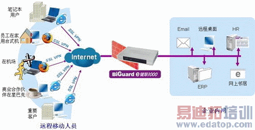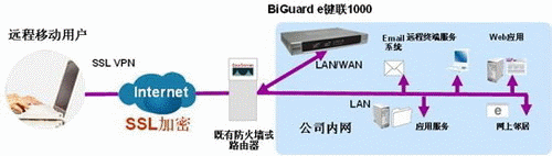 Billion BiGuard e键联1000不仅可以作为企业网关使用,对于办公网络已经完善的客户,利用内置的远程访问配置工具,一样可以在3个步骤内就完成ERP远程访问的设定。方案的应用无需改变网络结构,只要将e键联1000接入到原有的网关路由器后面,整个安装过程在10分钟之内就可以完成,省时又省力。