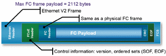 要解决以太网和光纤通道各自传输帧大小之间的差异。必须要一个更大的以太网帧来平衡光纤通道和以太网帧大小上的差异。有一个称为"巨型帧"的实质标准,尽管不是正式的IEEE标准,但它允许以太网帧在长度上达到9k字节。在使用"巨型帧"时需要注意,所有以太网交换机和终端设备必须支持一个公共的"巨型帧"格式。因为在正常情况下,以太网交换机是会对"巨型帧"进行丢弃处理的。