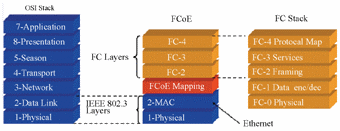 图1 光纤通道帧与以太帧OSI协议模型映射
