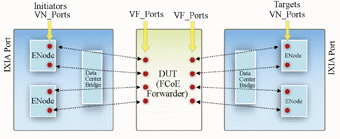 图4 IXIA 仿真FCoE发起端和目标端仿真示意