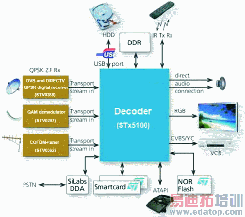 (图1)为支持DVR功能的机顶盒解码芯片方块图。