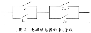 式中:Rt为并联后的可靠度;R为每个继电器的可靠度。触点串联能够提高其负载电压,提高的倍数为串联触点的组数。但使用时电压不要高于线圈最大工作电压,也不要低于额定工作电压的90%,否则会危及线圈寿命和使用可靠性,如图2所示。