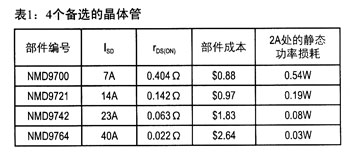 在本例中,我们要为开关电源选择最好的电源FET。晶体管的总功率损耗主要是开关损耗,但开关损耗计算起来要困难得多。我们可以根据FET的电流和开点电阻,相对简便地计算开关电源的静态损耗。
