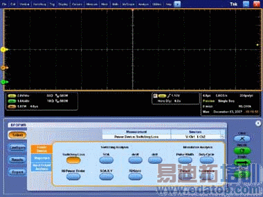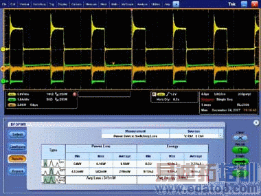 电源测量和分析软件为这类应用及许多其它应用提供了多种电源测量功能。如果晶体管的rDS(ON)未知或需要确认,也可以使用我们在开关损耗测量中使用的相同的测试设置进行这一测量。还可以使用图7所示的选择菜单来测量电源的工作状况,如频率、占空比和其它参数。此外,可以检定电感器或变压器的电感、磁性损耗和其它指标。