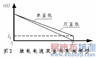 另一种假设为:电路中的电流经过计算放电时间 从稳态工作电流 衰减到某一个值(有些资料称为:截弧电流),从而建立了放电电流衰减双直线模型(见图2)。