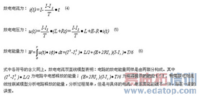 从上述函数关系式可以看出:电路释放的能量分为两部分,一部分为电路中电感储存的能量,另一部分为电源提供的能量。