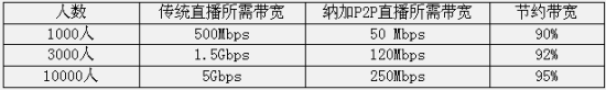 纳加设计的目标就是尽最大可能节省点播带宽,而又能最大程度保证用户的收看质量。收看用户优先从其它用户那里通过P2P取得数据,最大可能节省了点播端点播带宽。