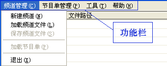 功能包括新建频道,加载频道文件,保存频道文件,加载节目单。可以建立一个新的频道,和任意加载节目单。