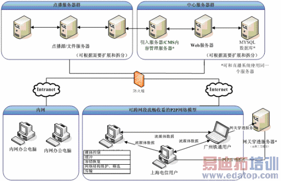 系统管理员可根据需要,将windows media service嵌入点播系统中,对原始非P2P格式的文件进行P2P升级。当发现热门影片或用户数量激增时,可随时调动其他服务器进行分布式负载均衡部署。