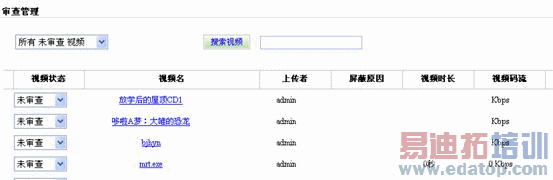 对上传的影片进行审查,只有通过审查的影片,才能进行影片管理的操作。防范各类非法和不健康的视频通过网站传播出去。