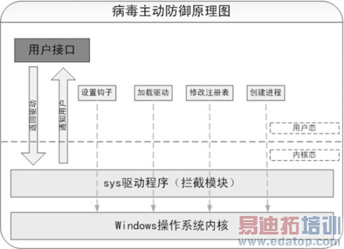 为了达到主动防御的目的,我们采取了拦截系统调用的方法,主要钩挂了SSDT表和Shadow SSDT表中的函数,把对这些函数的调用替换为调用我们自己定义的函数。