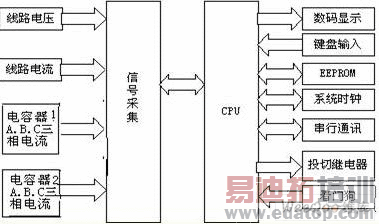 要实现自动控制,通常的做法是利用微控制器或处理器对采集来的数据进行计算,判断,然后再对对象进行控制。在本设计中为了使采集数据更精确,软件编程更简洁,使用新型的智能电表芯片替代了传统的ADC和部分MCU的工作。在软硬件设计中注重了对动态电容器的保护,实现了10分钟保护、过流保护、缺相保护、延时保护等多种保护功能,使得系统工作更加稳定有效。