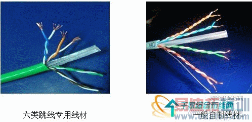 跳线专用线材一般为多股纯铜丝,拥有更好的柔韧性,传输率高。便于移动、携带,能保持线缆的性能,不易折断,弯曲等优点。而自制的线材一般为普通的双绞线,单芯,柔韧性差,随着时间的推移,单芯铜丝有断裂的可能。部分厂家为了降低成本,线芯多为镀锌铜或已经氧化的铜作为铜芯,线对的对绞也没有严格的执行工艺要求,也就直接影响了跳线的性能。