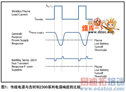 当评价移动电话通话时间和待机性能时,必须考虑电池的阻抗,因为只要电压值低于手机电路的工作阈值,即使持续很短时间100到200μs,就足以令手机关机。这种现象在 TDMA(分时多址)电话,如GSM移动电话中是常见的,其高电流和低电流的量值在一个射频传输过程中,脉冲变化幅度高达7到10倍。设计者需要模拟电池的真实现象,来定义一个适当低的电池阈值水平。测试工程师需要模拟真实的电池性能,来测定额定电池电压达到了低电压阈值水平,而不是在一个较高的电压水平。