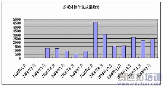 系统平台在2008年4月至6月进行开发过程中的伴随测试,并经6-8月试运营后,于2008年8月1日主体部分正式投入到多媒体化奥运报道使用,通过对截至2009年2月进行的后台数据统计,得到如下图表。图表数据显示了用户对平台的熟悉过程很短,在短短3个月内完全适应了这种跨度很大的变化,并且从用户使用频度可以看出,用户从测试期间进入平台到试运营后基本没有大的起伏,也即用户从试用后多数都"粘"在平台内,可见平台在用户需求贴合和"近人"理念上可圈可点,这得益于平台一体化、全业务形态和多媒体需求之下,兼顾强大信息互通共享功能和门户理念所带来的"傻瓜化"等优秀平台设计理念。辅以自有的研发控制团队可以与平台融为一体进行"积累式"进化并具有随需应变能力,使得平台具有了强大的生命力和进化力。在08年8月-9月,平台各系统在使用量上有了激增式的增长,表明平台在奥运期这个负荷繁重的时期也通过了压力考验。