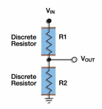 目前主要有两种实现电阻型分压器的方式:通过将两个分立的片状电阻连接到公共端,或者通过使用分压器封装在内部的电阻网络进行连接。你所选择的类型可能会对分压器的性能有很大的影响。