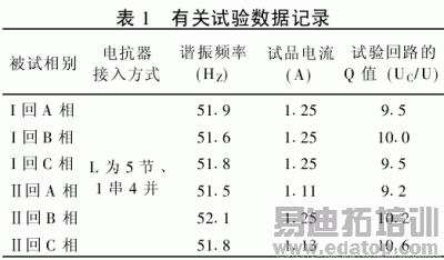 1)从试验中可以看出,"串-并联谐振法"实质上仍然是串联谐振。这次试验主要还是利用L- C谐振原理·与传统的串联谐振不同之处在于,电抗器L不是简单地与被试品电力电缆电容Cx构成串联谐振,而是与电抗器L1-L4和被试电缆电容Cx的并联回路产生串联谐振,谐振电压为Uc。并联电抗器L1-L4主要起补偿作用。