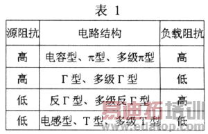 在EMI抑制中,低通滤波器使用得最多。滤波电路通常采用由电感、电容构成的无源滤波器的形式。电容与电感的连接方式不同决定滤波器的Q值和衰减量。噪声滤波器不仅要考虑其基本结构,还要考虑其所连网络两端的阻抗大小,并根据源阻抗及负载阻抗的不同,依照阻抗最大失配原则来选择正确的接法,两者阻抗差别越大,滤波器的滤波效果也就越好。电路结构的选择原则规律是"电容对高阻、电感对低阻",如表1。