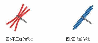 在使用悬挂线支撑电缆时,必须考虑电缆重量。电缆的重量因制造商而异,比如Molex 企业布线网络部23 号(直径为0.6mm)六类电缆的重量大约是五类电缆的两倍,如果采用这种1m长的24条六类电缆,其重量接近1kg,而相同数量的五类或超五类电缆的重量仅0.6kg,因此,每个悬挂线支撑点每捆最多支撑24 条电缆。