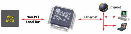这种方案是针对嵌入式系统之MCU本身具备Non-PCI总线或SRAM-like接口,则该系统可选用内建网络实体层及媒体存取控制器的Non-PCI以太网控制器来提供连网功能。由于大部分的MCU皆提供Non-PCI总线,藉由本方案可将以太网的连接性加入嵌入式系统中,不仅可经由网络发送数据,也可达成远程控制的功能,工程师将可创造高性能、低成本且精简的嵌入式网络应用。
