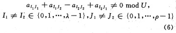 因此,若采用上面的方法构造(λ,ρ)正则LDPC码,只要λ≥2,ρ≥2且λ+ρ≥5,相应的校验矩阵中也就必然包含图所示的字矩阵或其转置矩阵,于是得到的LDPC码的围长也就必然不可能超过12。