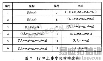 将图6环上各个的非零元素依次编号,并令编号为1的元素坐标为(0,0,x,x),则环上各节点的坐标如图7所示。