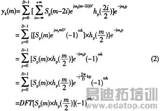 为了防止频谱混叠,其抽取倍数应为D/2。这样,多相滤波器的第k路输出推导如下(D’=D/2时):