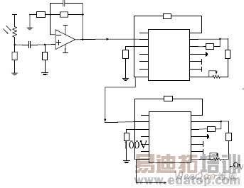 由于 PbS 是电阻型传感器,故输入电压可通过高压偏置和取样电阻分压得到。在进行 电路设计时,基于提高增益的稳定性、频率特性的平坦性和直线性的要求,还应该减少输入输出间的相位变化,减小输出阻抗,系统采用非反转放大电路作为前置放大电路。