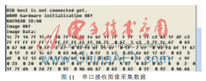 为方便检验采集到的图像,将ARM采集到的图像数据通过UART口发送到PC终端,再将数据组合成图像显示。接收到的数据如图11所示。