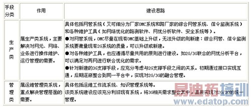 表1 3G网络维护管理支撑手段分类与建设思路