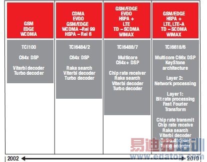 图2–-TI的实施历程:基站SoC中的无线标准