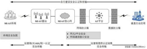 在NB-IoT物联网方面,由于采用了运营商授权的频段,除了自行构建整体安全方案之外,还可以借由运营商的大力支持而得到更好的安全保障。其整体安全架构如图3-5所示。