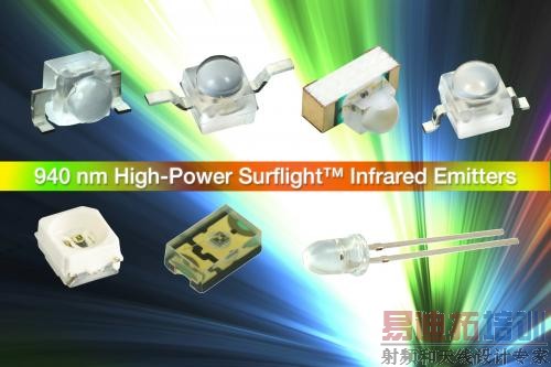 今天发布的器件包括一个带抛物线透镜的5mm插脚红外发射器,8个采用0805、PLCC-2封装,含顶视、侧视SMD器件。不同于由从芯片各个方向发光的红外发射器,Vishay的SurfLight器件把几乎所有光和功率由芯片的上侧发射出去。由于把大部分光集中在表面,这些器件实现了更高的强度,带插脚的发射器的辐照强度达到惊人的600mW/sr,SMD器件的辐照强度从10mW/sr到120mW/sr。